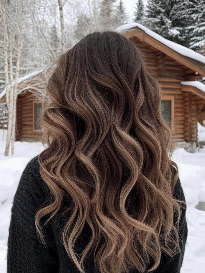 If you love a balanced, wearable style for winter, this one delivers. The subtle Highlights keep the depth from feeling heavy, especially for pale skin, and the soft waves can be created with a medium curling iron in under ten minutes. It’s dimensional, flattering, and incredibly easy to maintain between salon visits.