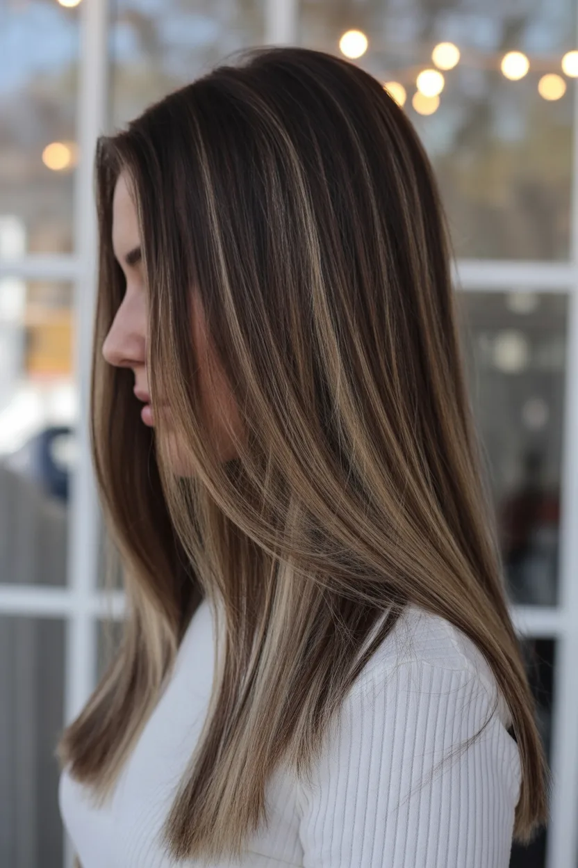 This is a beautiful option if you want dimension without fully Dyed dark roots or a dramatic Color shift. The placement of the Highlights enhances movement and works well on straight or slightly wavy hair. A touch of texturizing spray will keep it airy and modern without weighing it down.