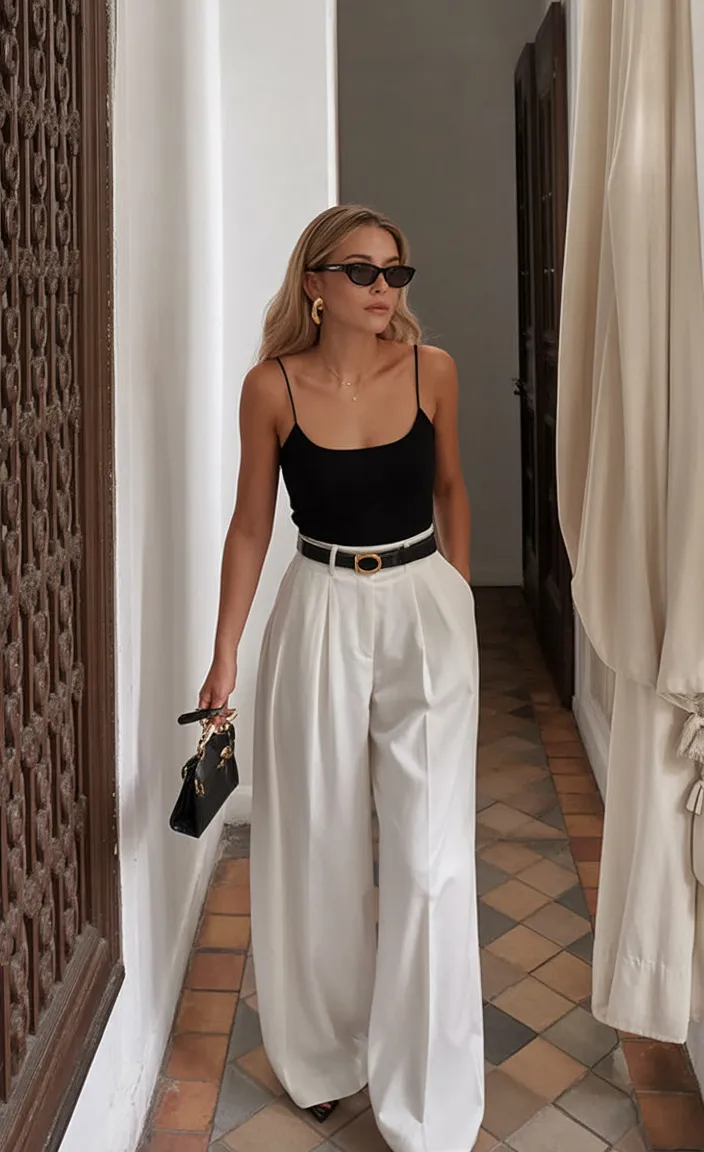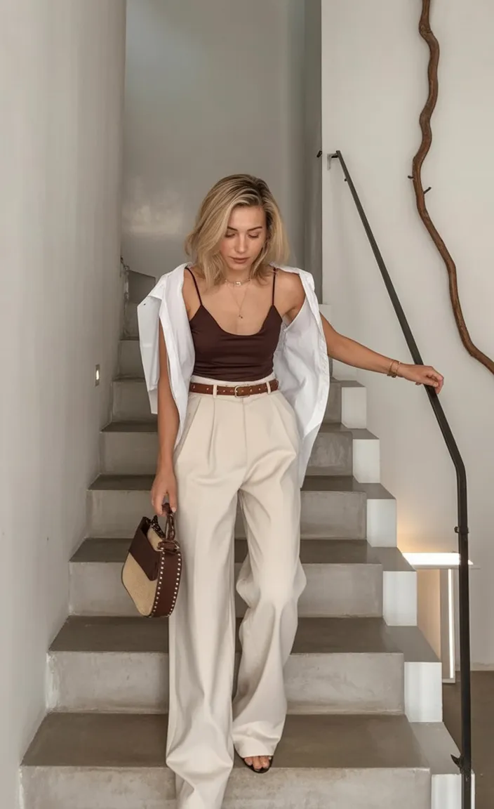 This outfit feels calm and intentional. Soft neutrals and relaxed tailoring create effortless elegance.