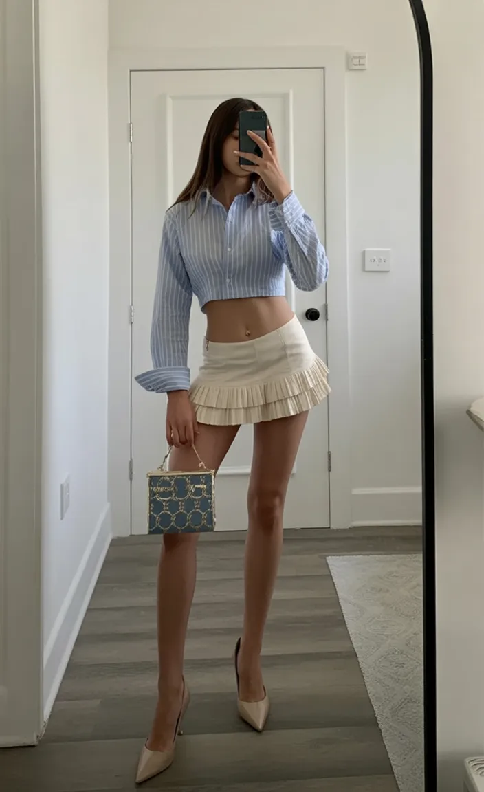 This look goes well with structured pieces, statement sunnies, or a bold lip. Straight or slightly wavy hair works best, and all this needs is a quick blow-dry and some smoothing cream. If you want an understated yet powerful fresh style, this one, you know, has that quiet confidence that turns heads.