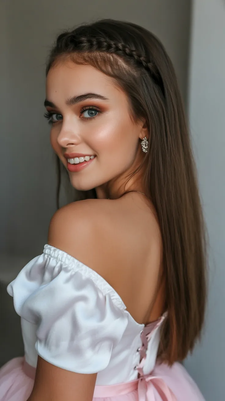 Ideal for women who prefer long hair and a clean silhouette, this style works best on straight or lightly wavy hair. It’s a lovely choice if you want something Easy to maintain throughout the day—no constant touch-ups required. A bit of smoothing serum and a neat braid are all it takes, making it a smart option for women who appreciate Simple beauty with lasting impact.