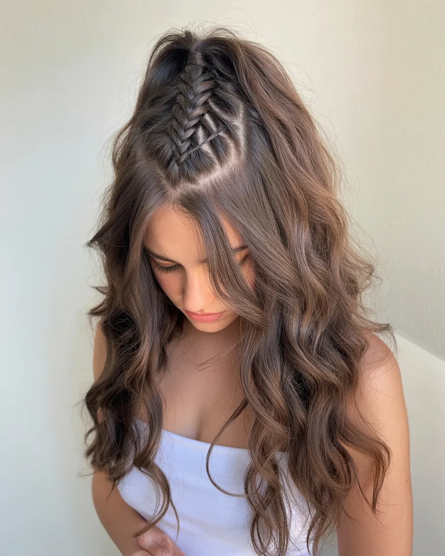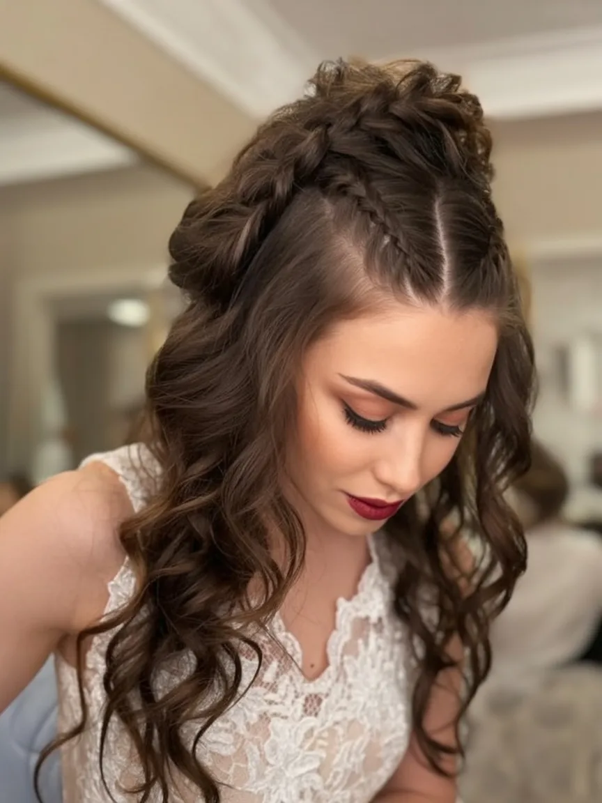 10. Textured Half-Up Braided Style with Soft Curls
