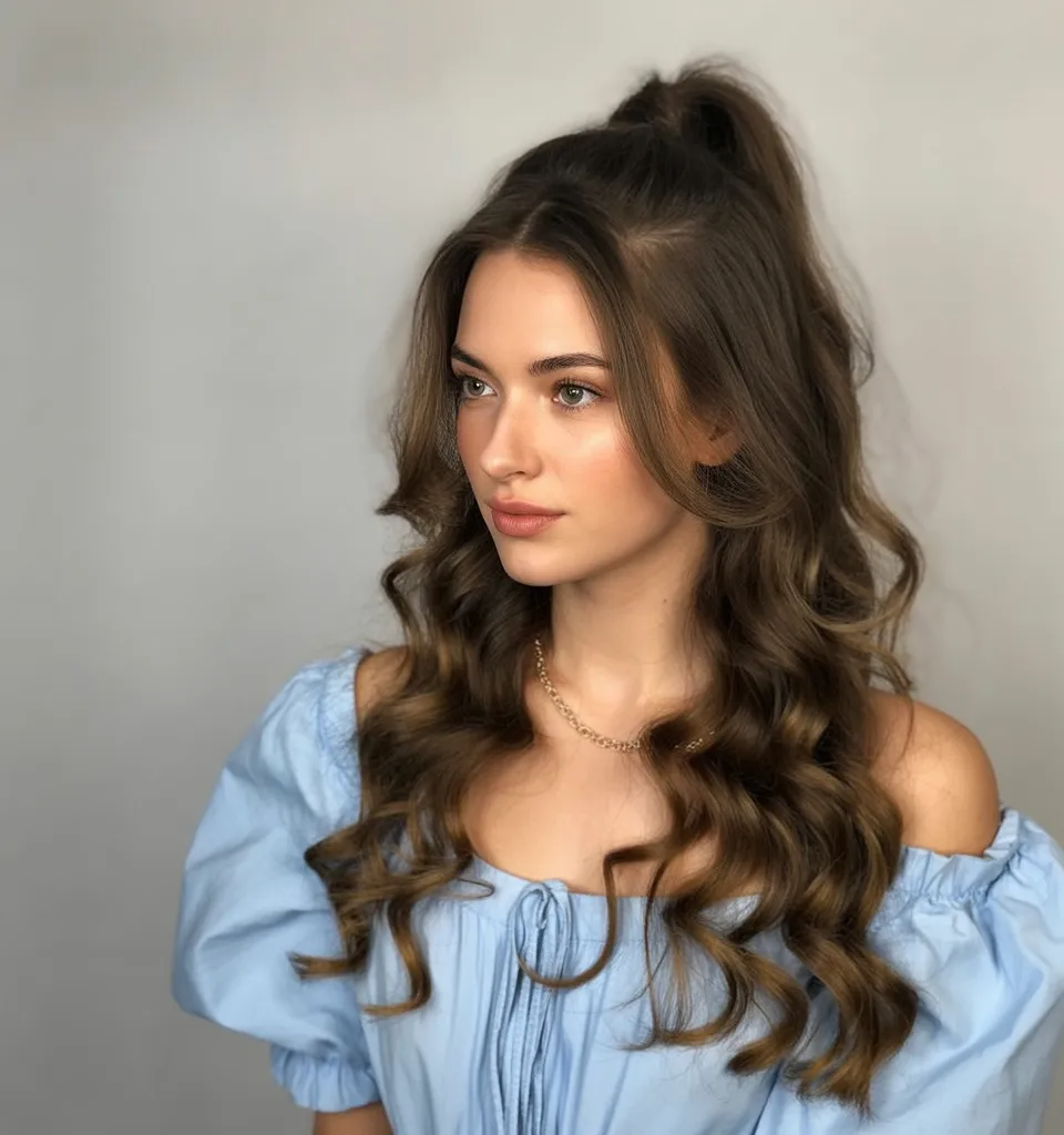 8. Soft Half-Up Waves with Subtle Side Twist