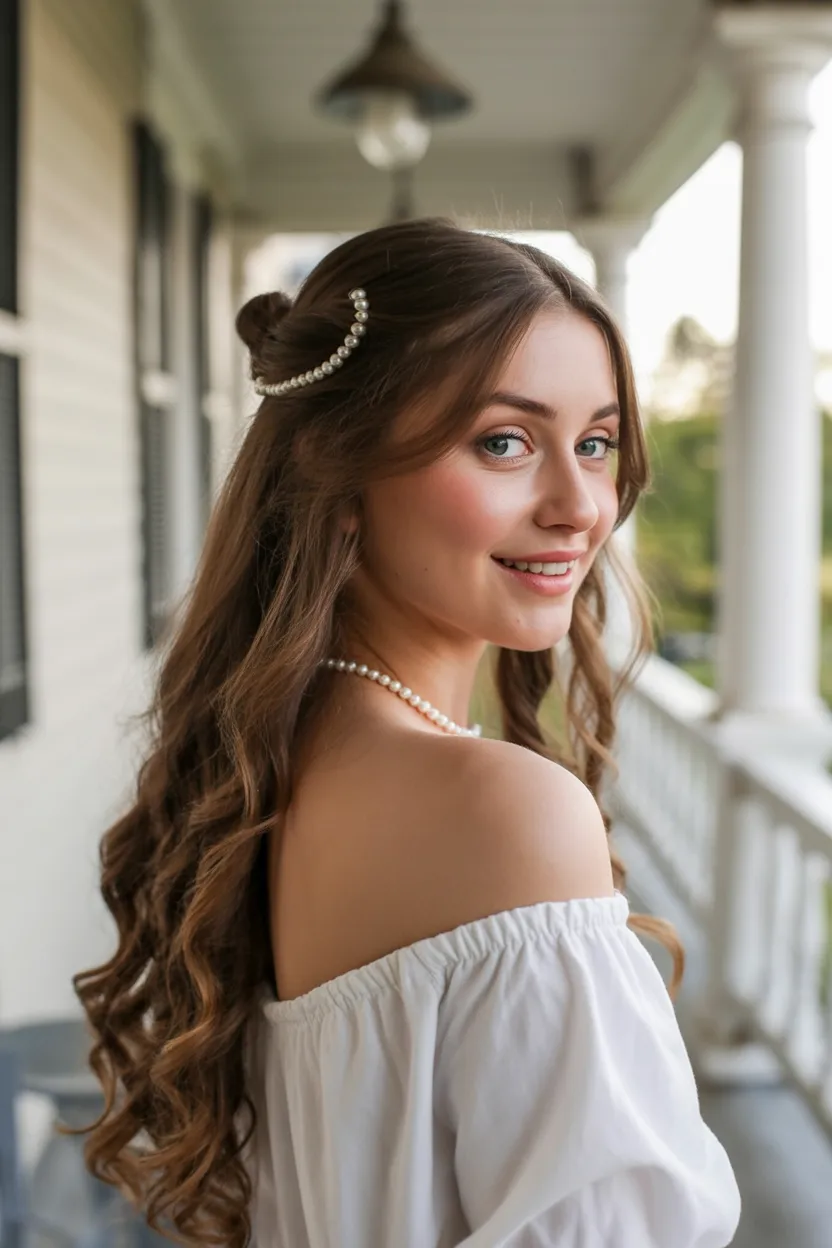 17. Soft Half-Up with Pearl Hair Detail