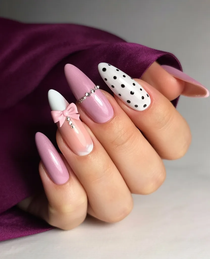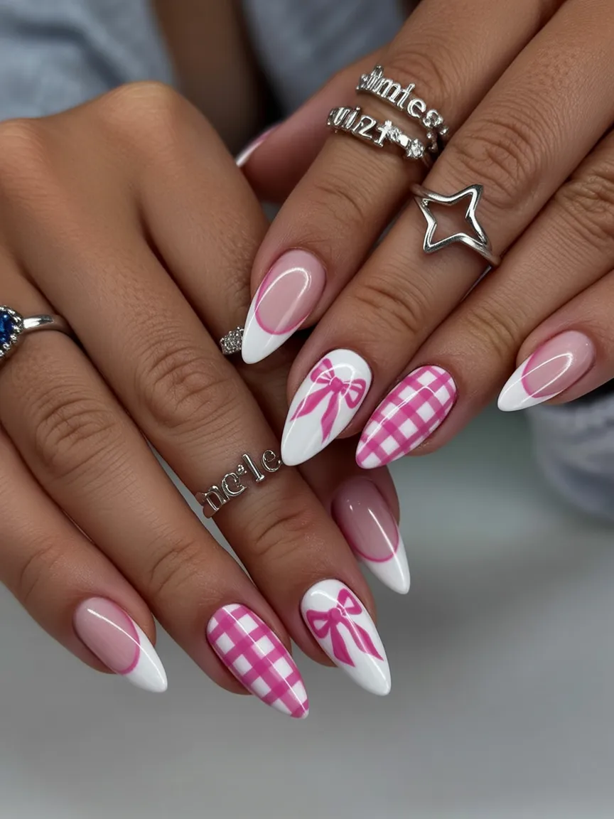 This one is just pure charm. The soft pink base combined with white French tips and a gingham design creates a fun, almost retro vibe. With those subtle bows included, the whole design suddenly feels cute, feminine, and well coordinated—a more polished version of your spring dress.
