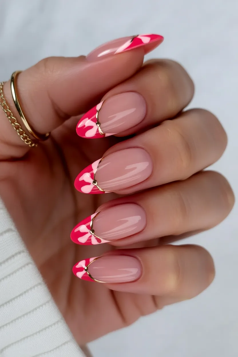 This one feels like a fresh update on the French tip we all grew up with. The vibrant Pink edges are playful and feminine, but those thin Gold lines add a sleek, modern twist that makes the whole design feel intentional and refined. It’s Cute, yes—but also surprisingly elegant.