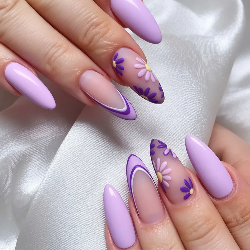 If you love Long Almond shapes, this style highlights them perfectly. The combination of Lavender and white detailing works especially well on medium to longer lengths. It’s an Easy way to embrace spring Inspo while keeping your manicure polished and sophisticated.