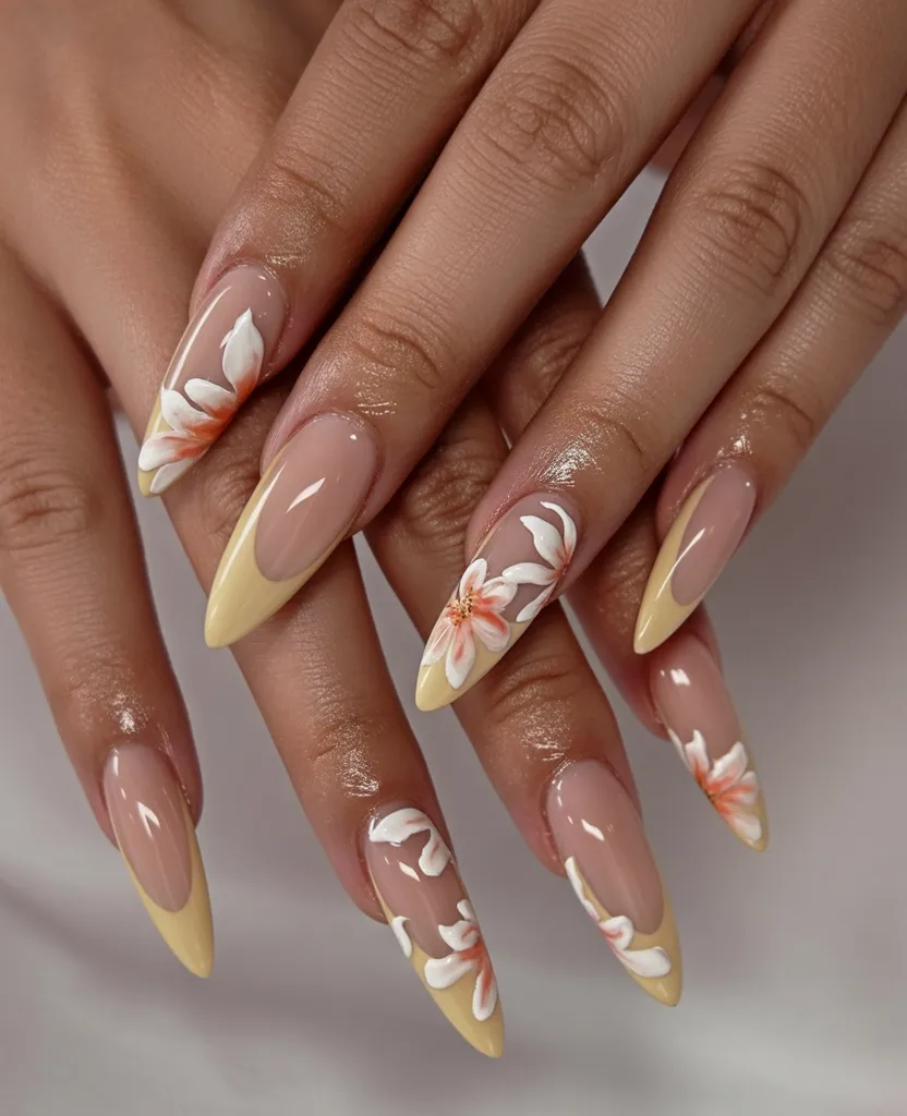 12. Elegant Yellow Floral Almond