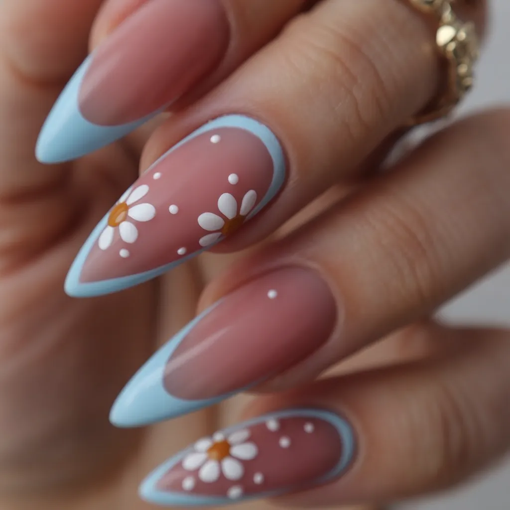 13. Baby Blue French with Daisy Art