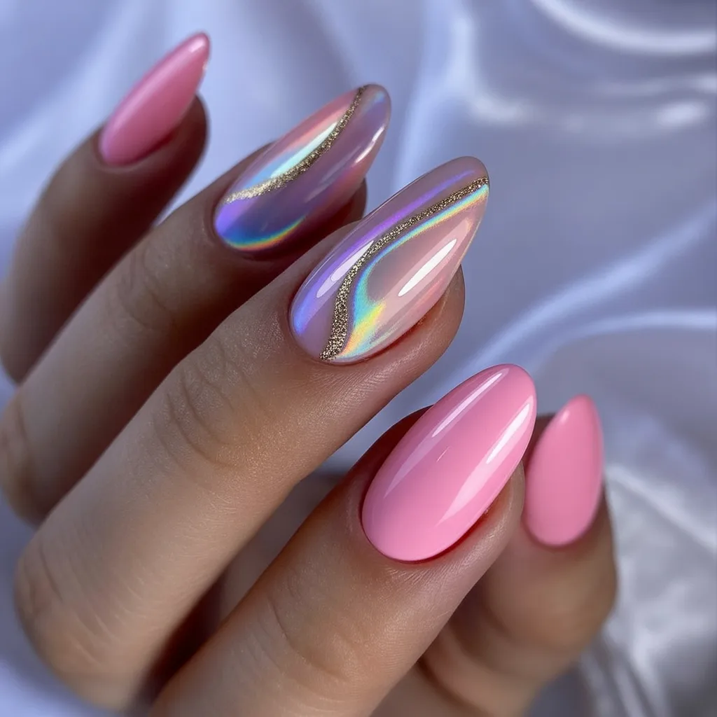 What makes this special is the subtle Chrome finish layered over a classic Pink base. It feels modern without being overwhelming. Perfect for Almond shapes and Gel lovers, this is a stunning option if you want spring Ideas that feel elevated and on-trend for 2026.