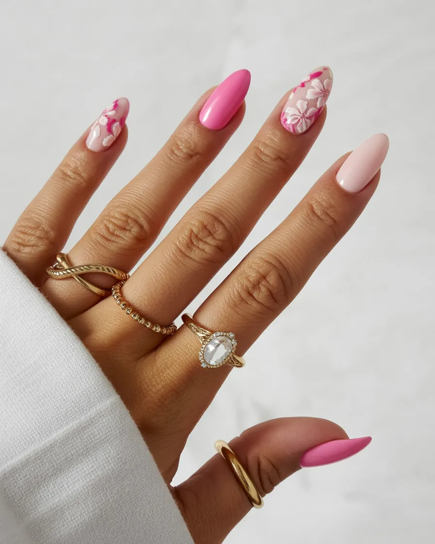 21. Bright Pink Floral Almond