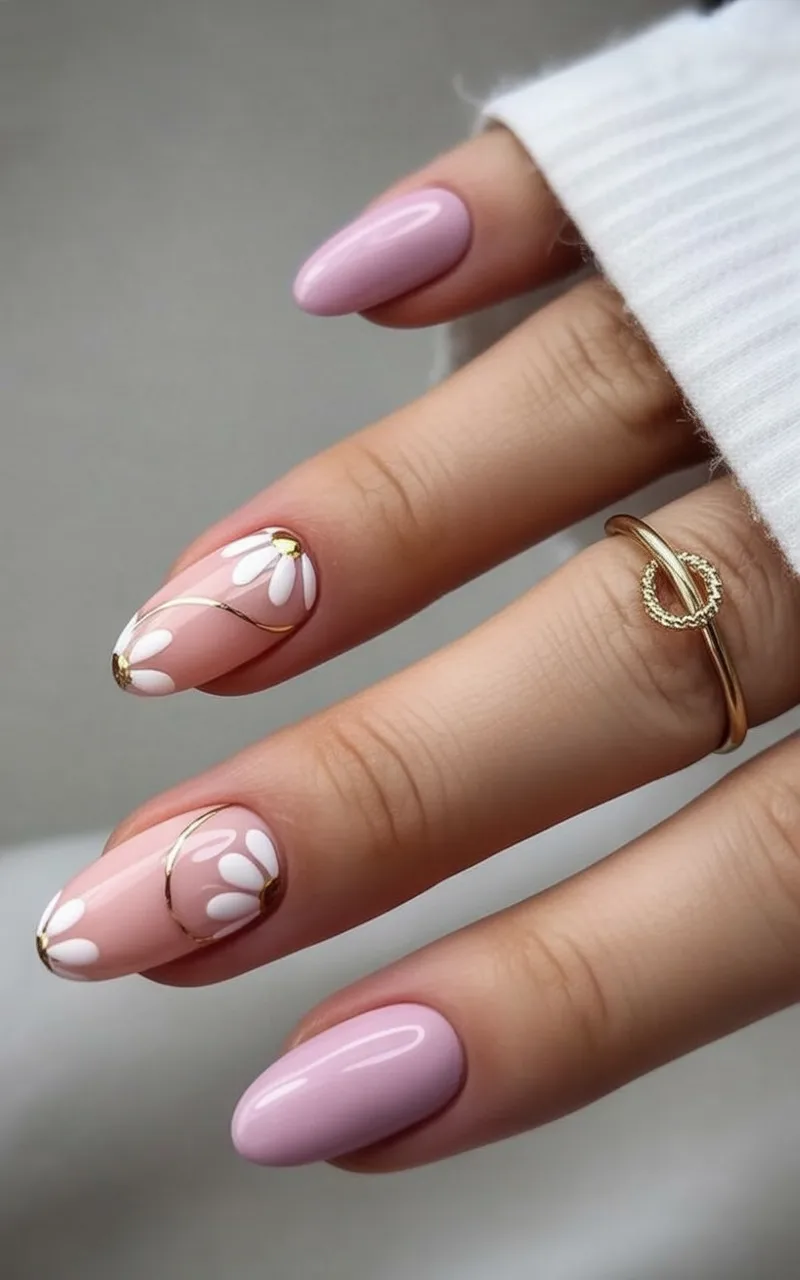5. Minimal Pink with Gold-Edged Daisy Details