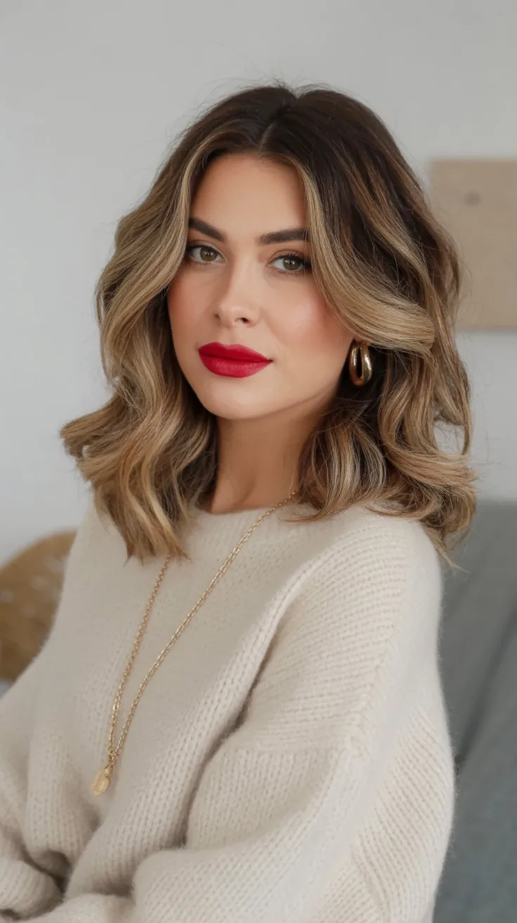 If you’re craving a refresh without losing length, this layered Wavy style is perfect. It suits Medium to Thick hair and adds lift around the cheeks, making it flattering for a Round face. A curling wand will enhance the bends, but even a loose blowout keeps those highlights beautifully blended and polished.