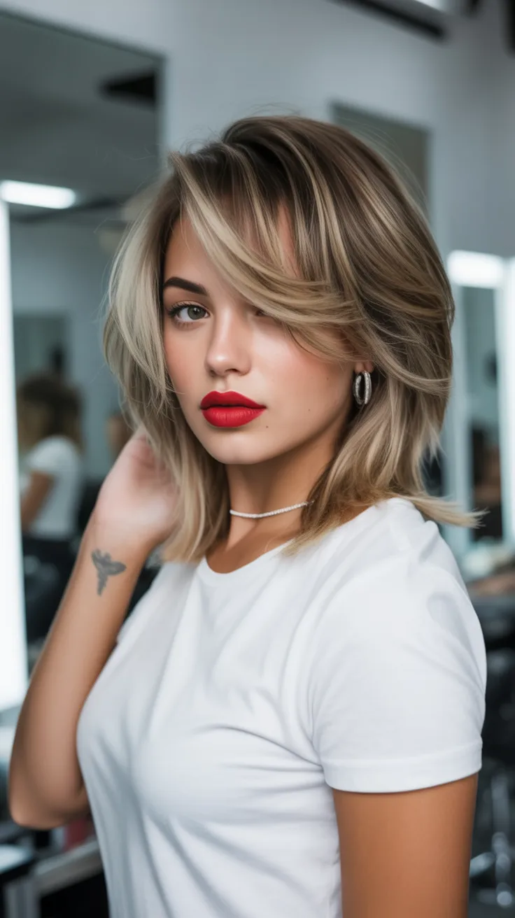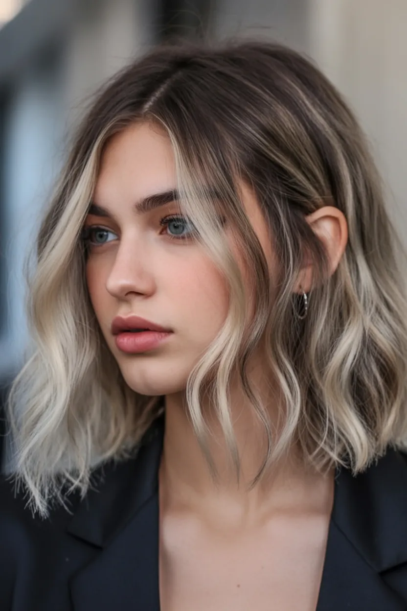 There’s something effortlessly cool about this Messy Blonde lob. The slightly undone waves and soft contrast between light and Dark tones give it that relaxed, almost French charm. It doesn’t look overstyled—it looks lived in, confident, and real. Like you’ve embraced your texture instead of fighting it.