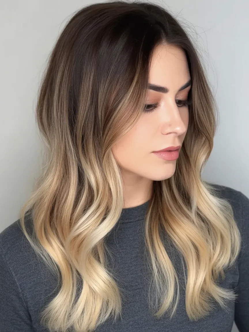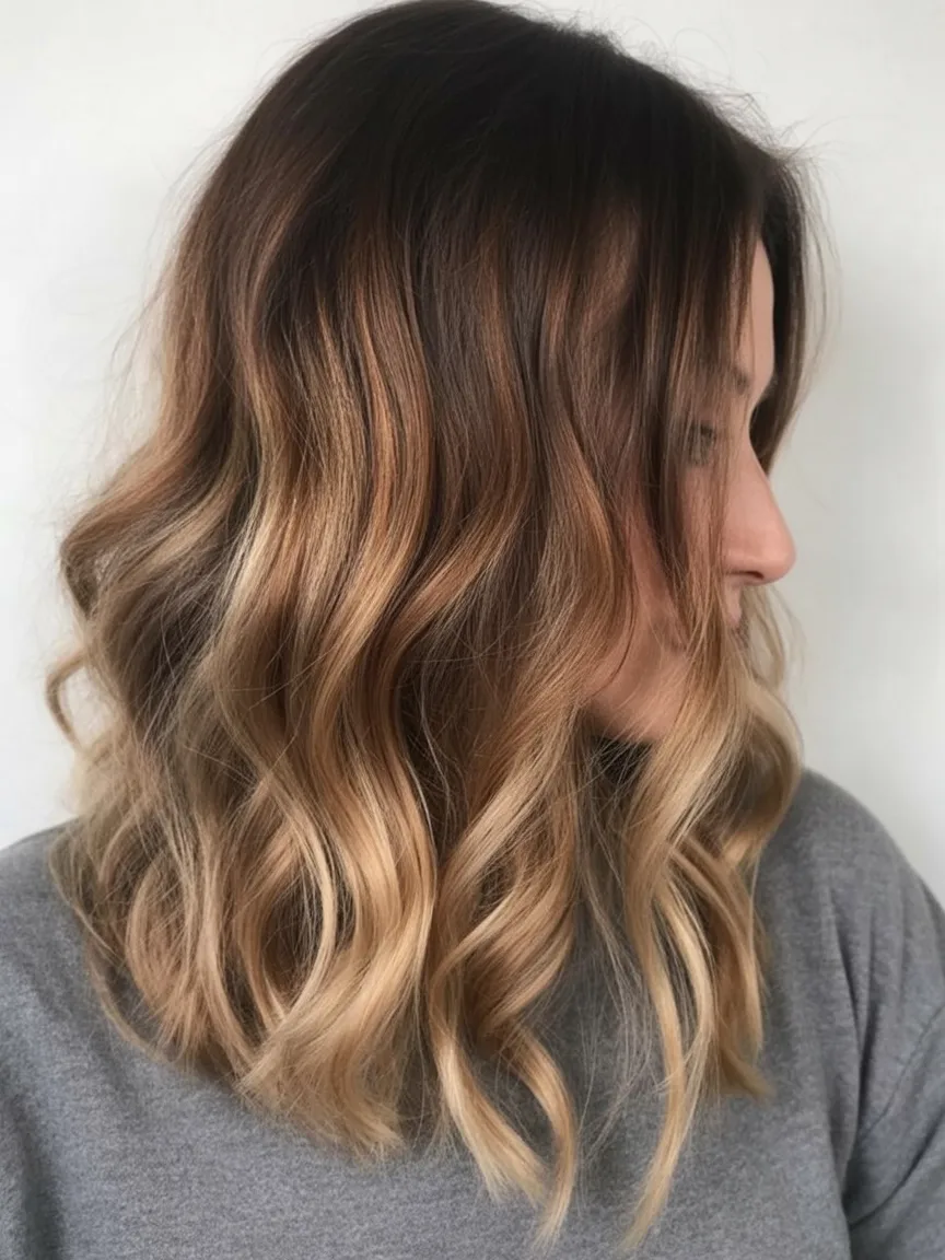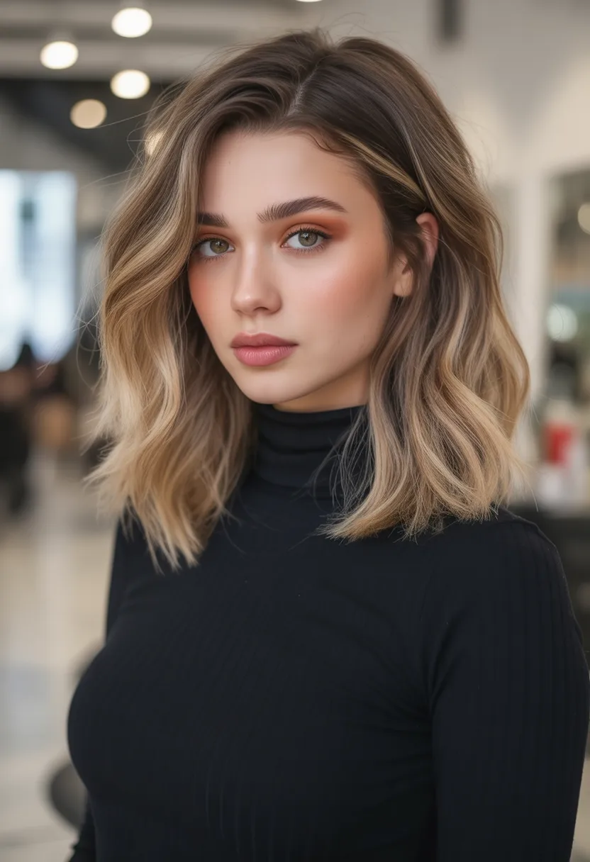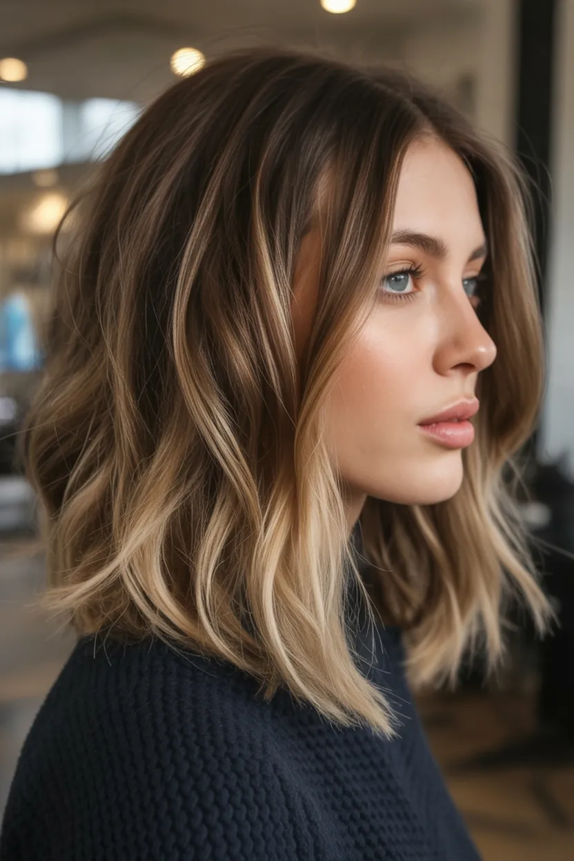 22. Long Wavy Lob with Soft Balayage