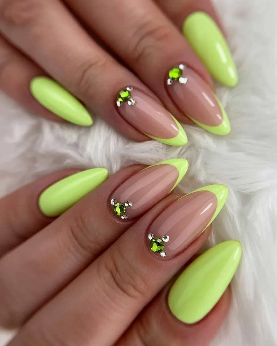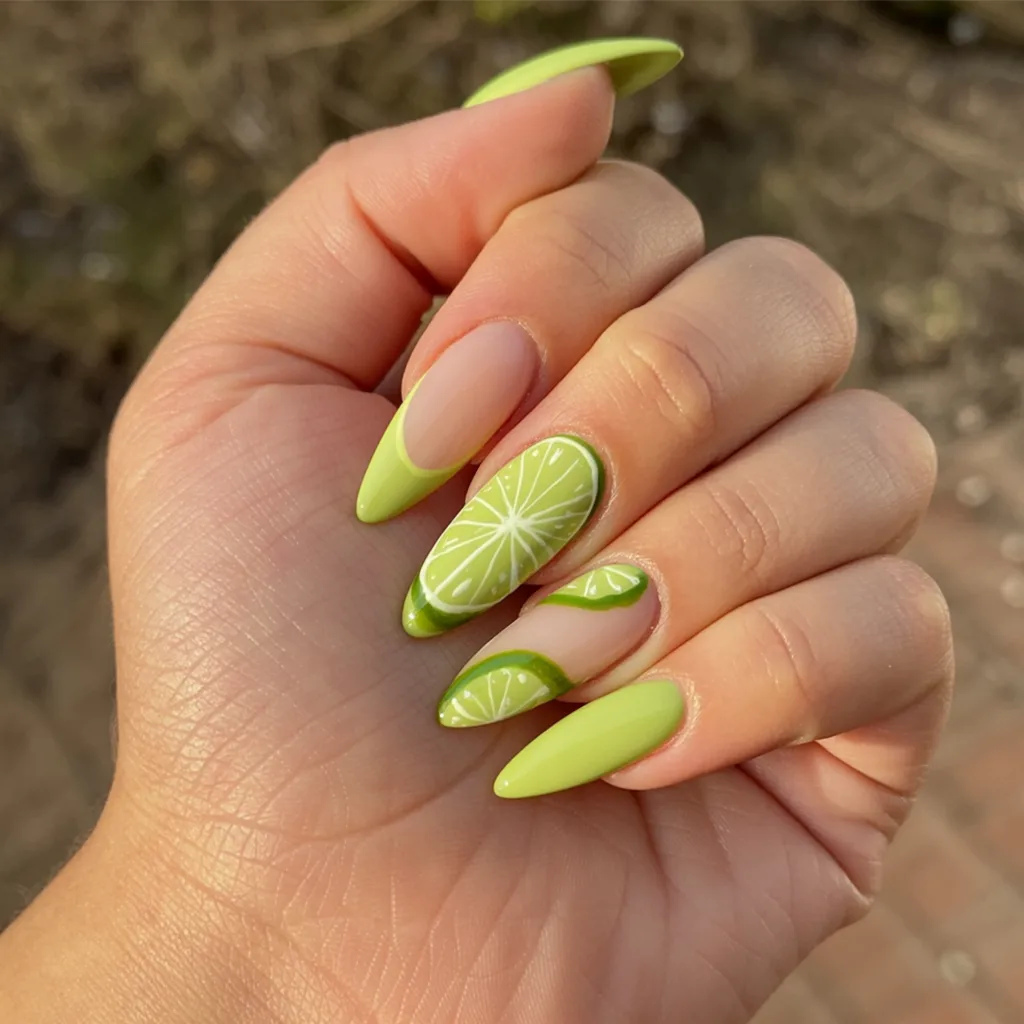 This juicy Green manicure feels like biting into the first slice of lime on a sunny afternoon. It’s crisp, energizing, and unapologetically cheerful. The aura-style citrus detail adds personality without looking busy, giving you that playful spring mood that instantly lifts your whole look.