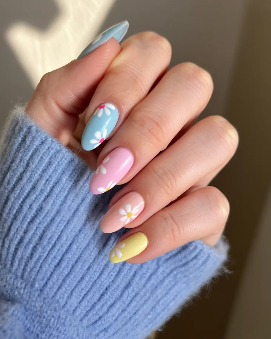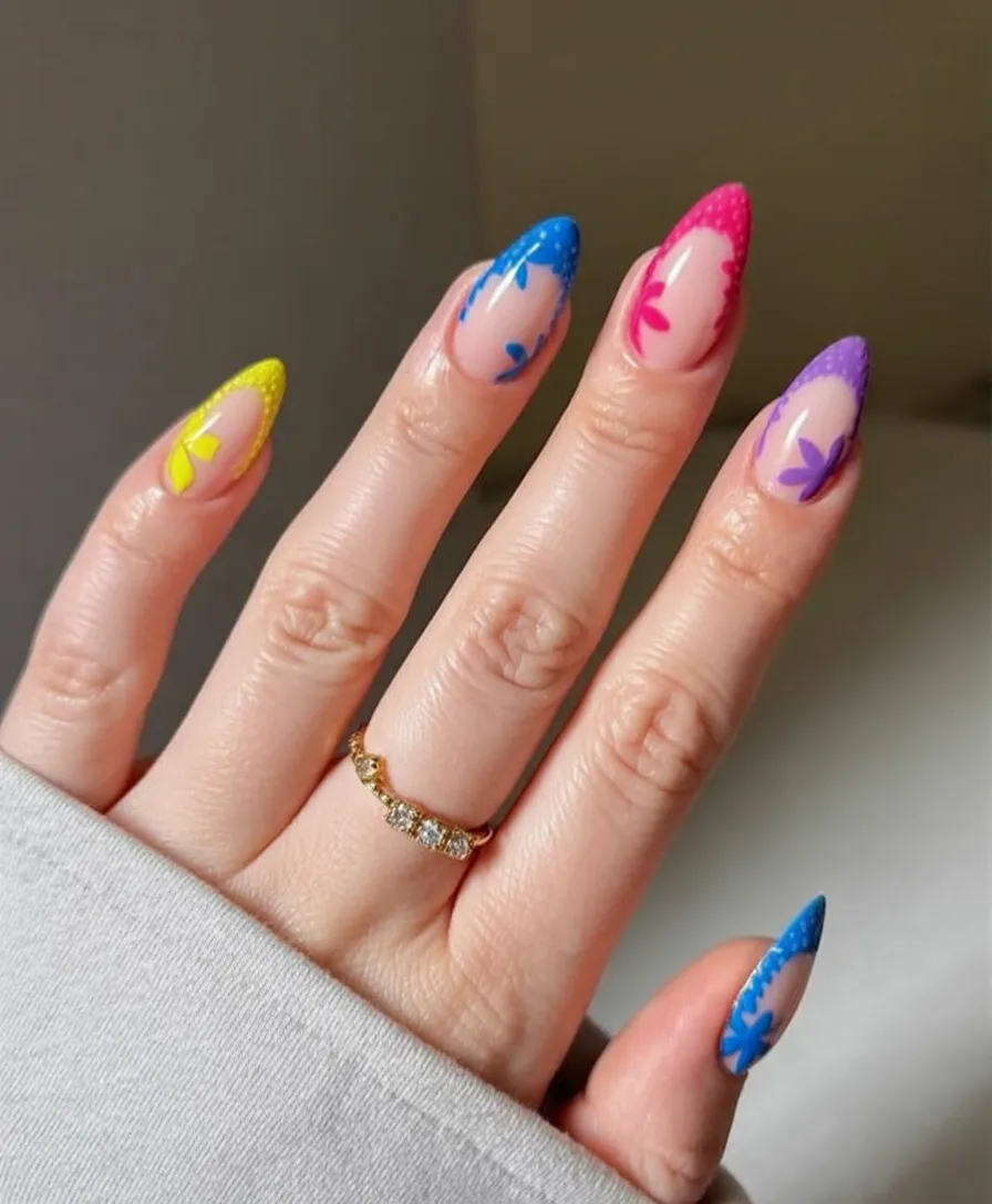 If you’re ready to embrace bolder Ideas, this Design gives you variety without chaos. The Almond shape keeps everything cohesive, while the colorful flowers add personality. Wear it with simple outfits and let your nails be the statement—sometimes that’s all you need.