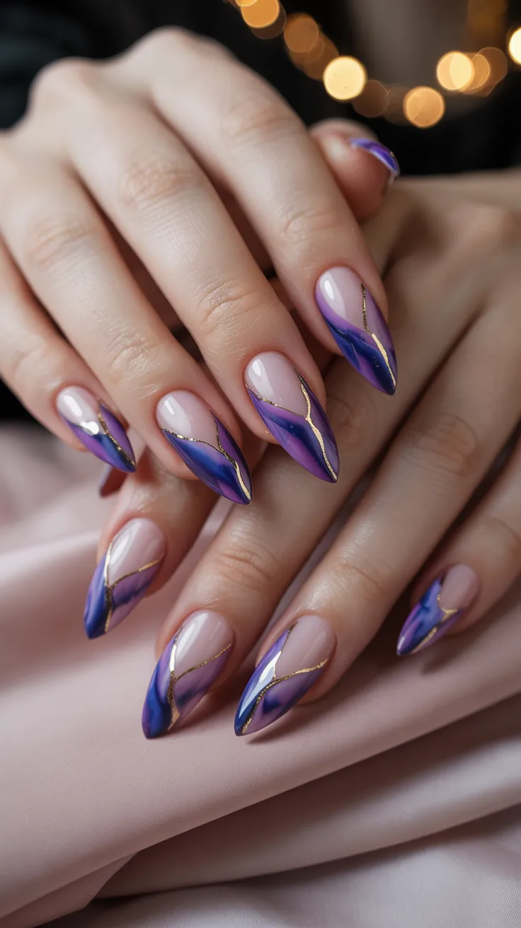 This one feels like wearable art. The flowing mix of Purple and Blue with delicate gold accents creates a soft marble aura that’s sophisticated but still completely on trend for 2026. There’s something almost calming about the fluid lines—like silk fabric draped across your fingertips.