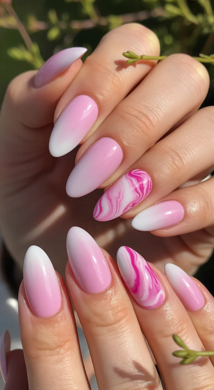 If you’ve suspected you were leaning toward more artistic Designs, now’s the time. The almond line keeps it sophisticated, while the marble brings the art. It’s perfect for the spring festivities, vacations, and any time you want your nails to keep people talking.