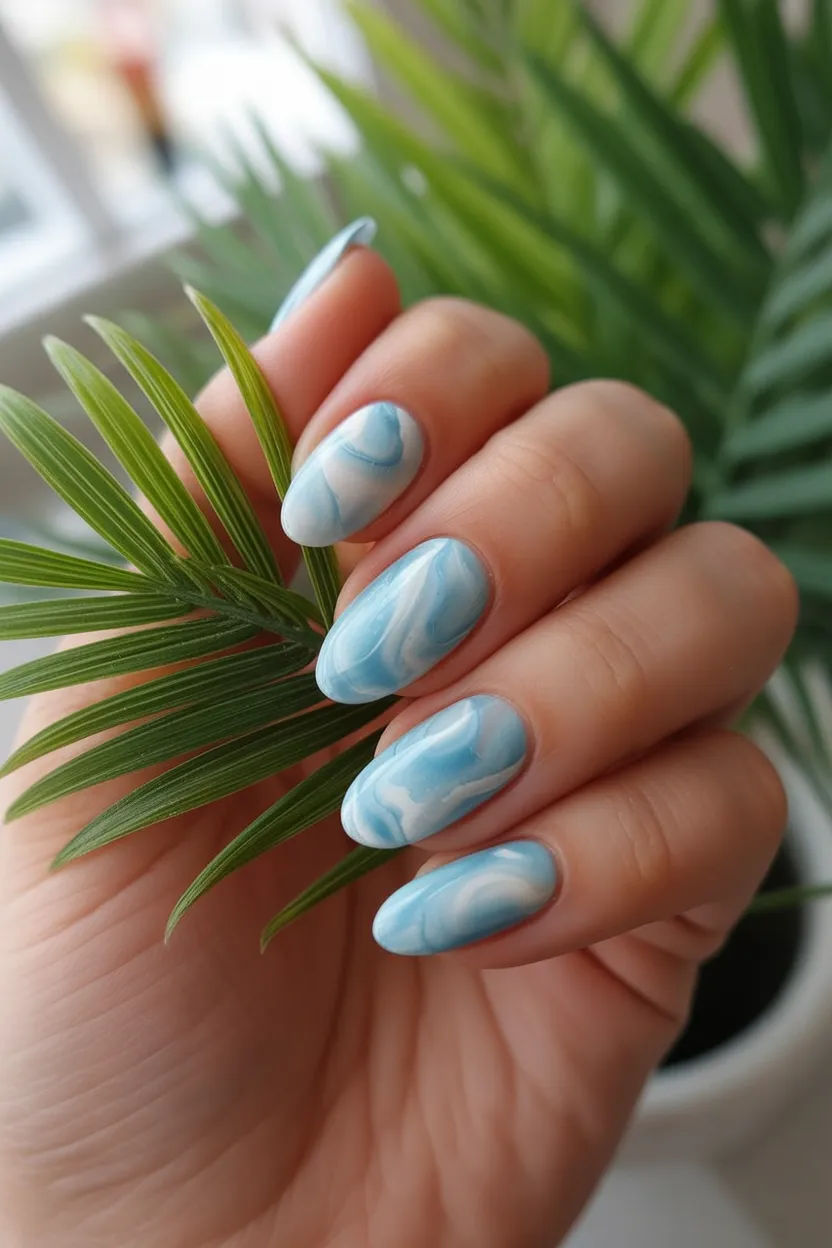 This manicure is pure Inspo for anyone craving something artistic but refined. The flowing teal and white marble effect, touched with hints of gold, feels luxurious and expressive without being overwhelming. It’s creative, feminine, and has that boutique-salon feel that instantly elevates your mood.
