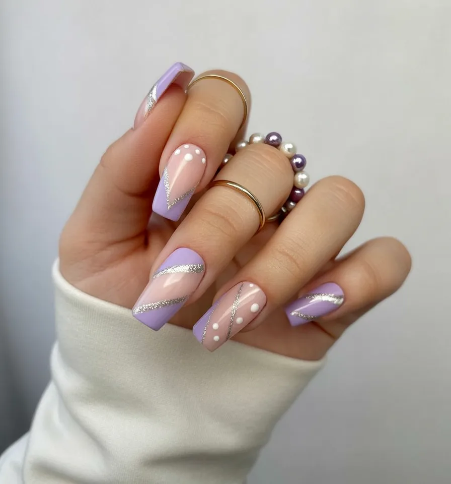 6. Lilac Geometric Square Birthday Nails