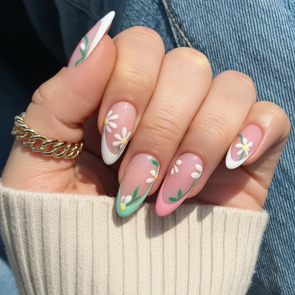 14. Soft Floral Almond Spring Nails