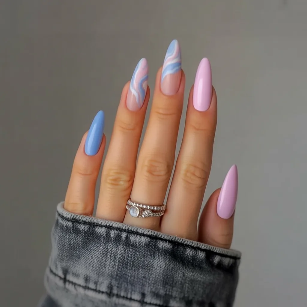 23. Pastel Swirl Almond Birthday Nails