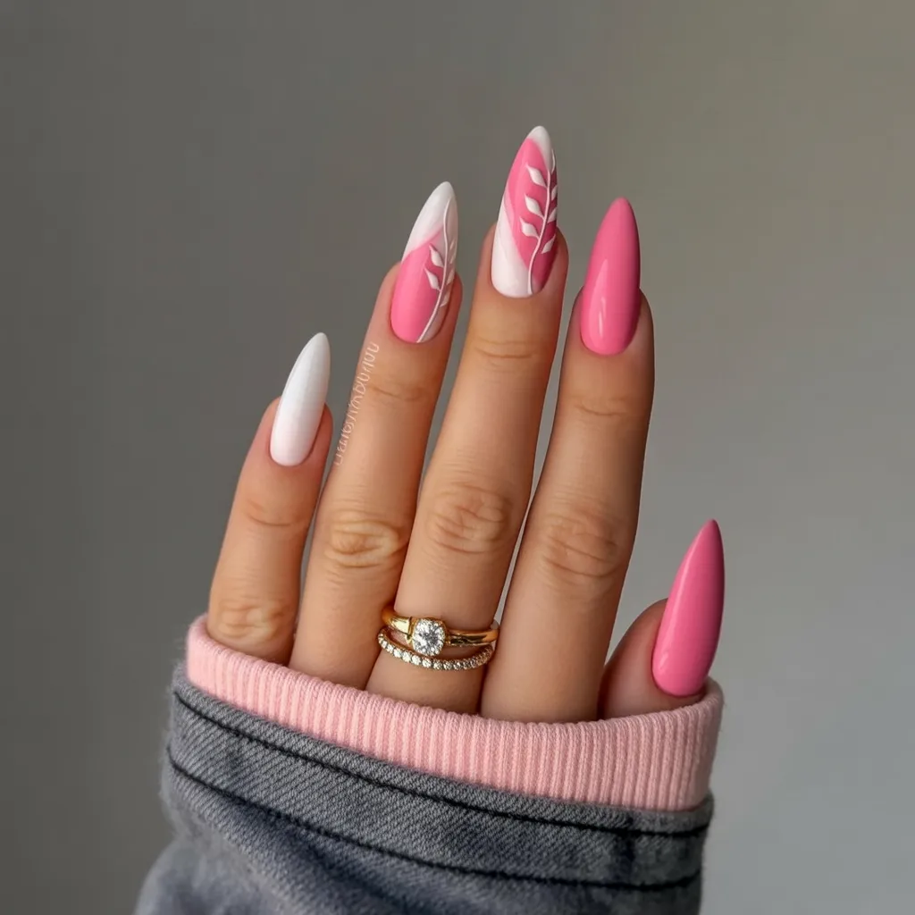 9. Pink and White Almond Birthday Nails