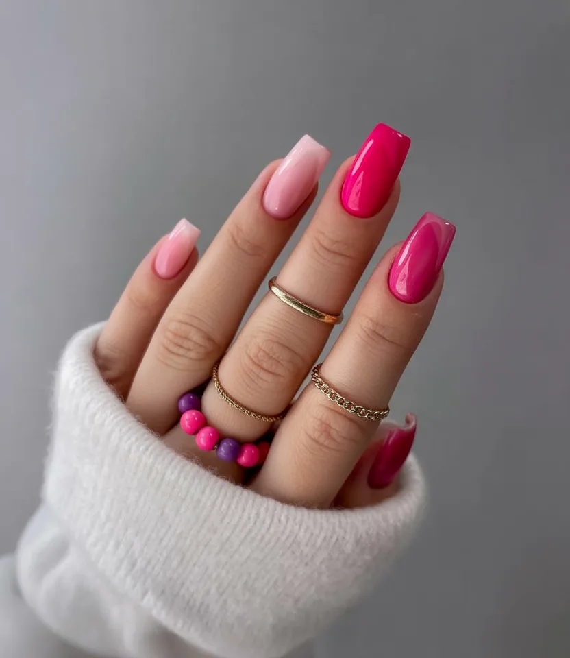 13. Bold Pink Birthday Square Nails