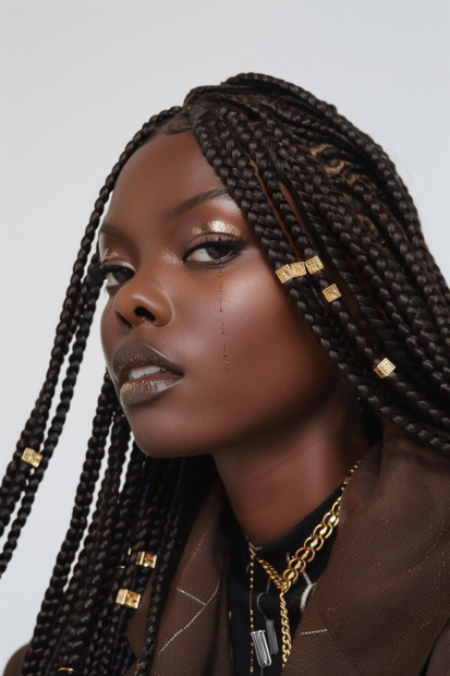 Boho Knotless Braids With Gold Cuffs and Luxe Vibes