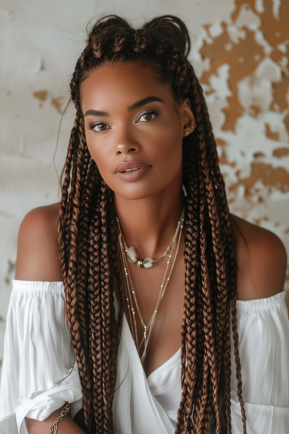 Long Boho Knotless Braids With Half-Up Twists