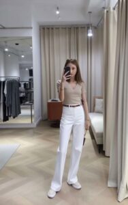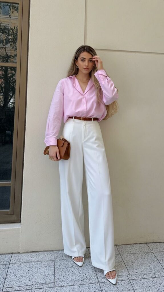 Classy spring outfits often revolve around neutral and pastel shades. Cream, beige, blush pink, soft gray, and light blue create a calm and elegant foundation.