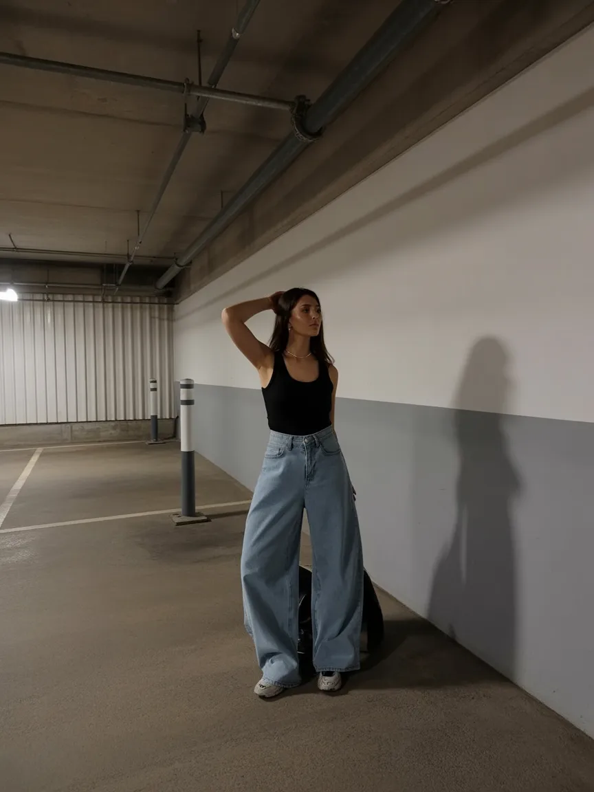 This kind of outfit is perfect for women who love fashion that feels natural and unfussy. The loose denim allows freedom to move, while the fitted tank keeps the silhouette balanced. Add chunky sneakers or sleek boots, layered jewelry, and maybe a small shoulder bag. The vibe leans modern, slightly Y2K, and effortlessly cool.