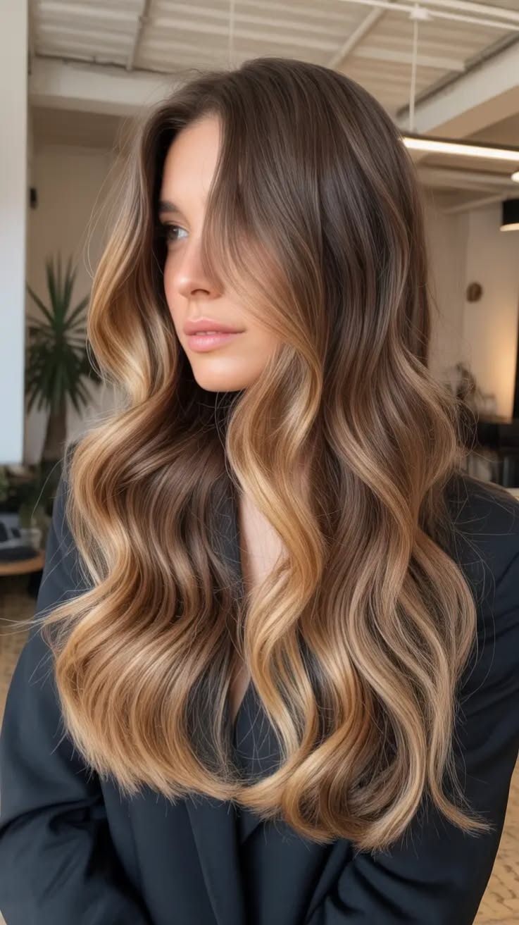 Loose waves, soft curls, and natural blowouts highlight balayage beautifully. These styles allow the blended tones to catch the light, enhancing depth and movement.
