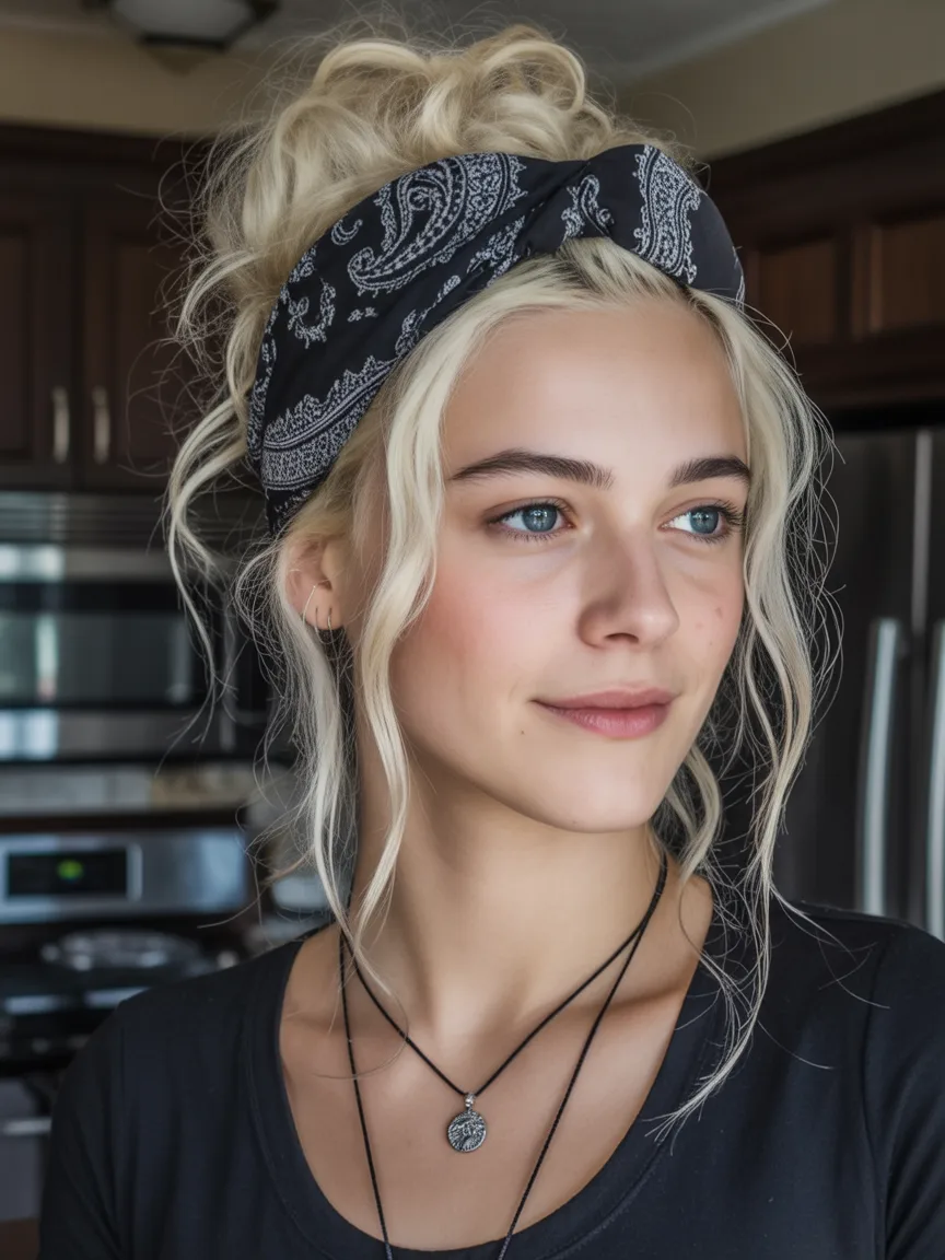 2. Messy Bun with Bandana Headband