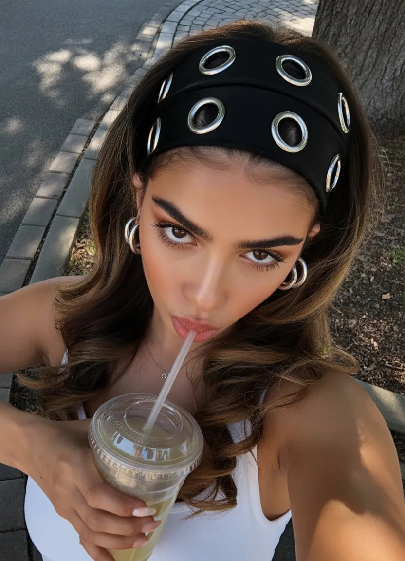 A wide, stretchy headband paired with smooth, straight hair gives off a polished, modern confidence. The hair stays sleek and controlled while the headband creates a clean frame around the face, drawing attention to the eyes and cheekbones. It’s a simple look, but the effect is incredibly chic—the kind of style that makes you look instantly put together.