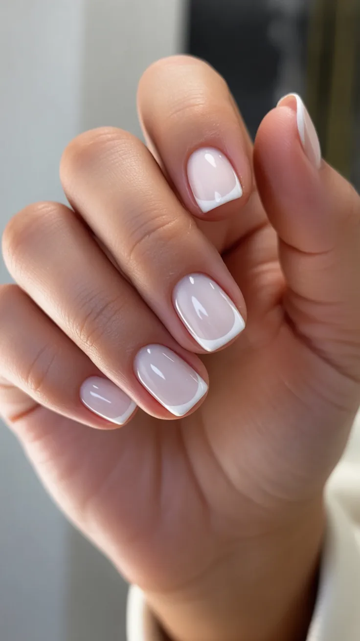1. Soft Milky White Short Square with French Tip