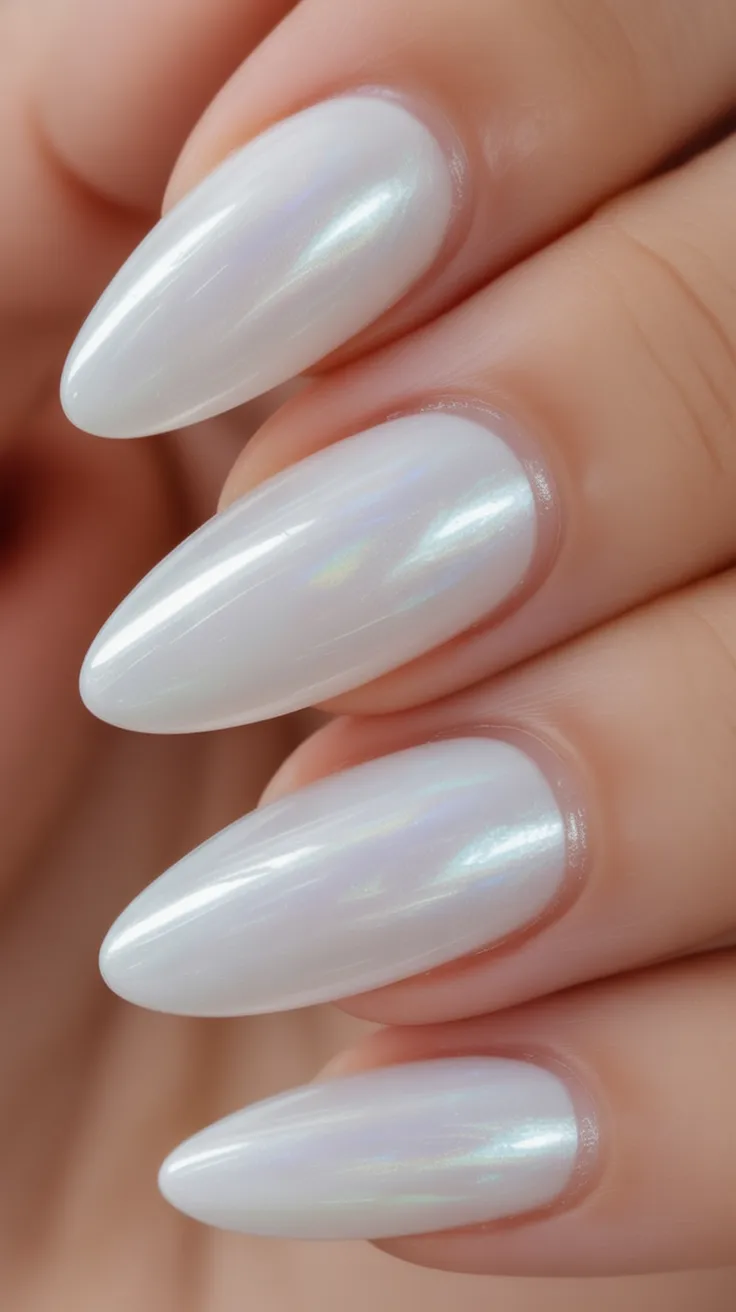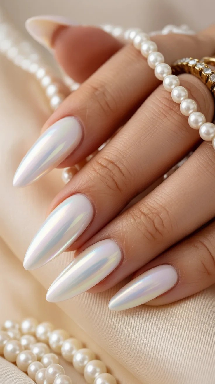 4. Pearlescent Milky Chrome Almond Nails