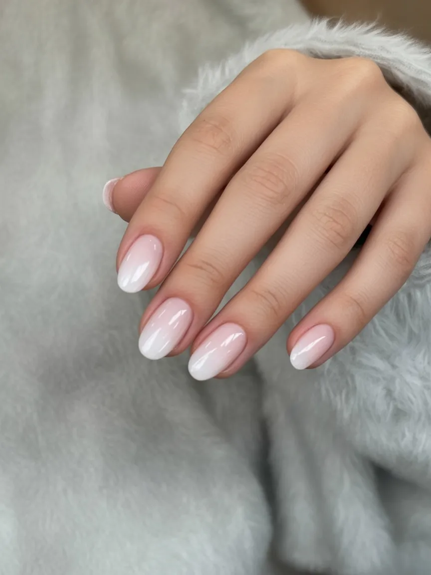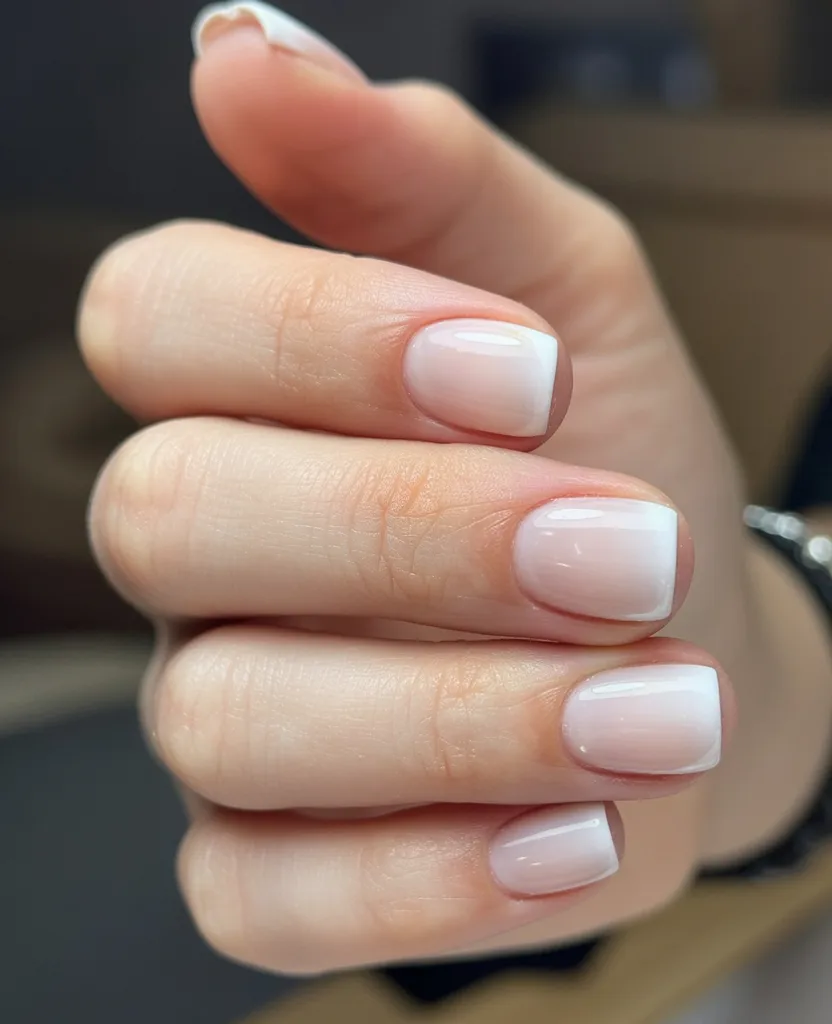 17. Short Natural Milky Ombre Nails