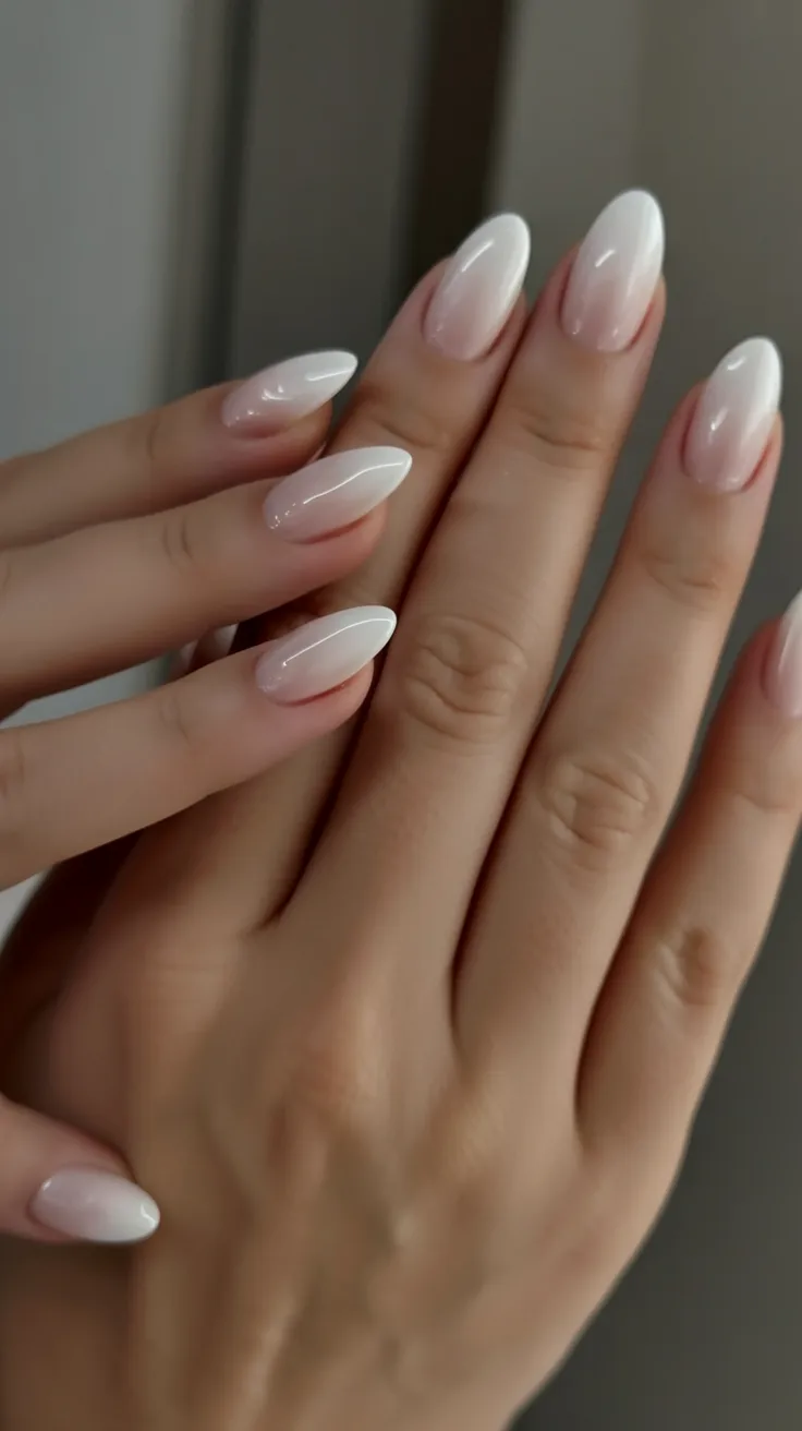 12. Soft Milky Ombre Almond Nails