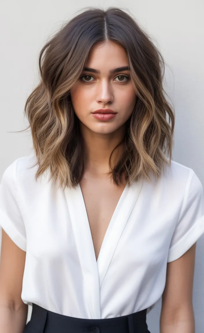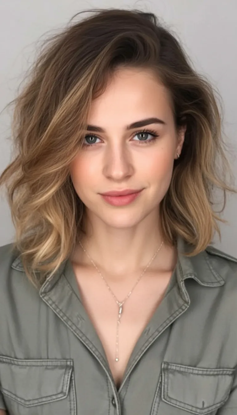There’s something so magnetic about this Mid length cut paired with loose Wavy hair. The texture breaks up fullness around the cheeks and adds that soft, vertical flow that flatters a round face beautifully. It feels relaxed yet intentional—the kind of haircut that looks good even when you don’t try too hard.