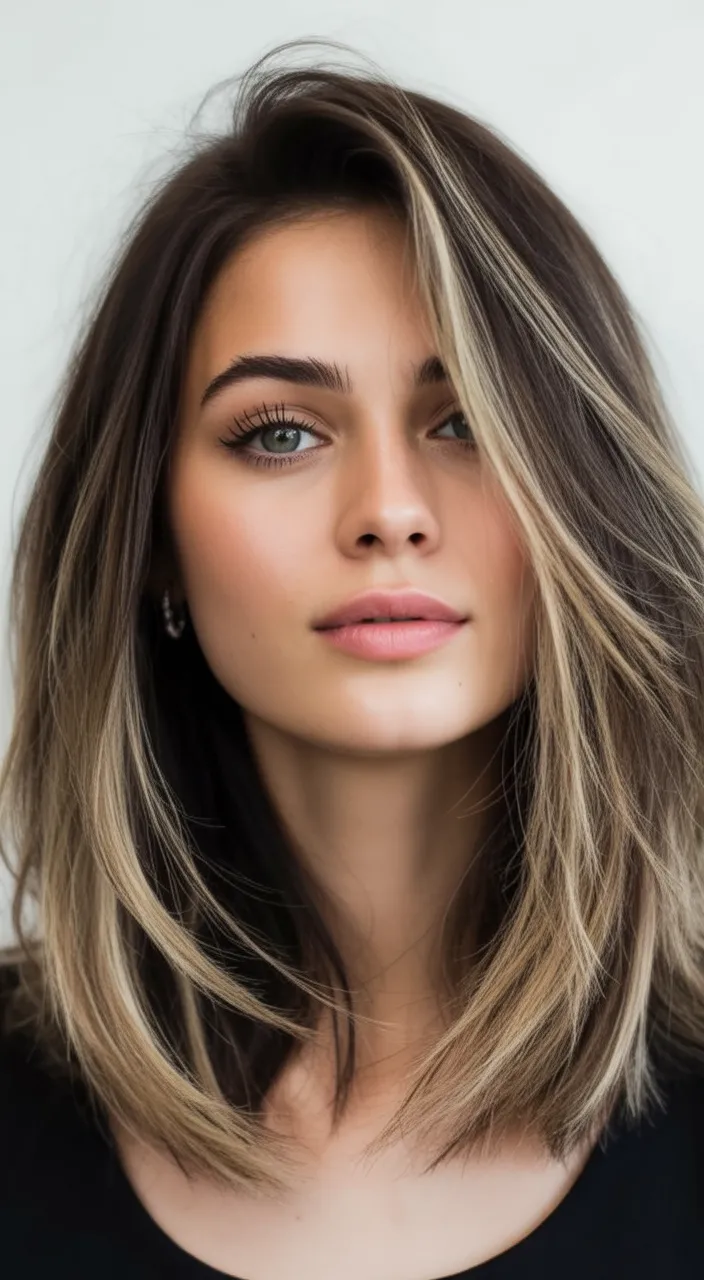 10. Long Straight Layers with Face-Framing Highlights
