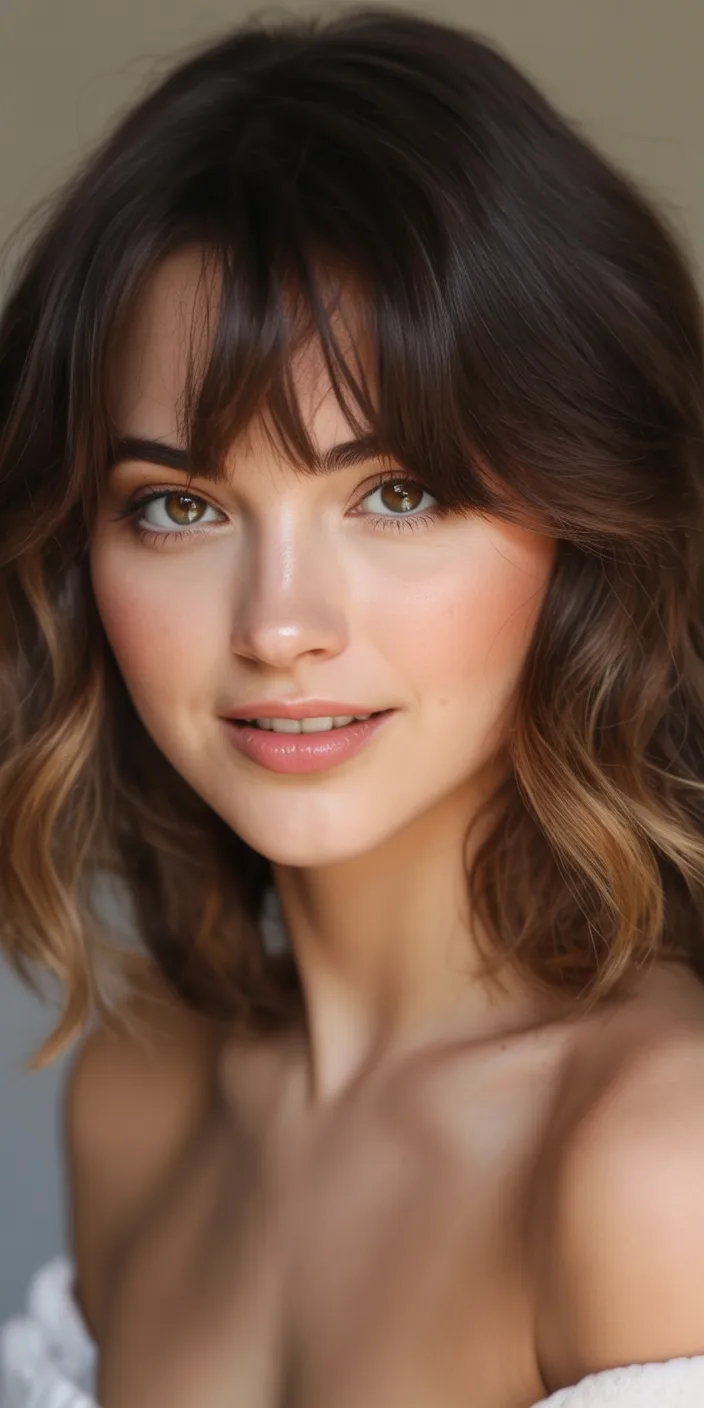 This is ideal for Wavy hair or lightly Curly textures that need shape without heaviness. Use a medium-barrel iron to create loose bends and let the Bangs fall naturally to the side. In 2026, airy fringe is everywhere, and this version feels wearable and beautifully balanced.