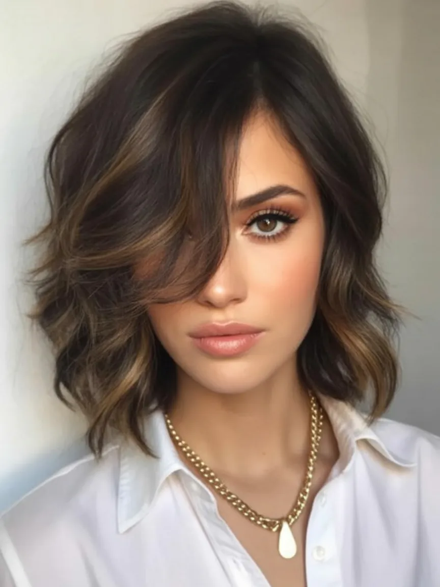 This cut works beautifully for naturally Wavy hair and can also enhance Curly textures with the right shaping. It’s especially great if you want something lower-maintenance than longer styles—just scrunch in a bit of styling cream and let it air dry. Compared to Short straight cuts, this version feels softer and more forgiving.