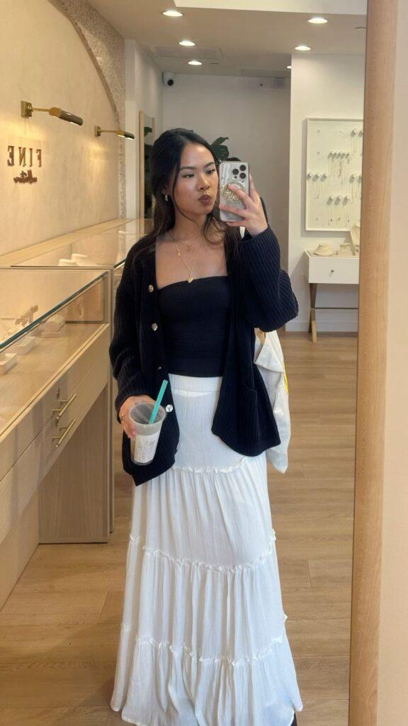 Long skirts and midi silhouettes continue to define modest spring fashion in 2026. A-line skirts, pleated midis, and softly draped designs offer movement and elegance. Paired with tucked-in blouses, knit tops, or lightweight sweaters, these skirts create timeless outfits suitable for a variety of occasions. Soft textures and breathable fabrics keep the look comfortable throughout the day.