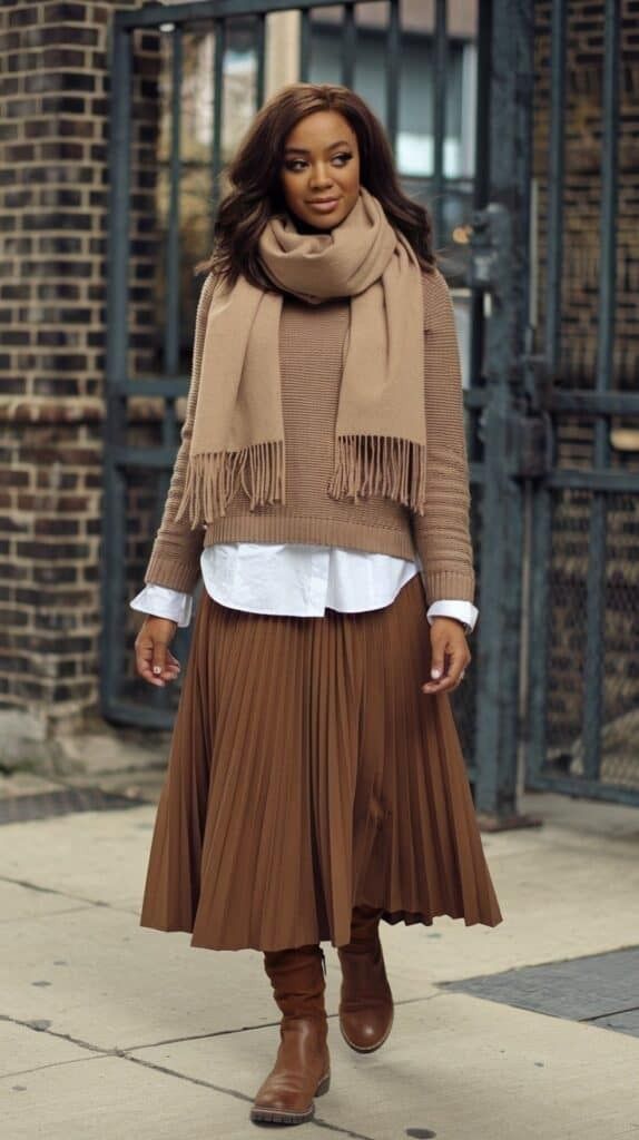 Comfort-focused bottoms are essential this season. Straight-leg pants, wide-leg trousers, and midi skirts provide ease of movement while maintaining a polished appearance. High-waisted designs help create a flattering silhouette and pair well with tucked-in blouses or lightweight knit tops.